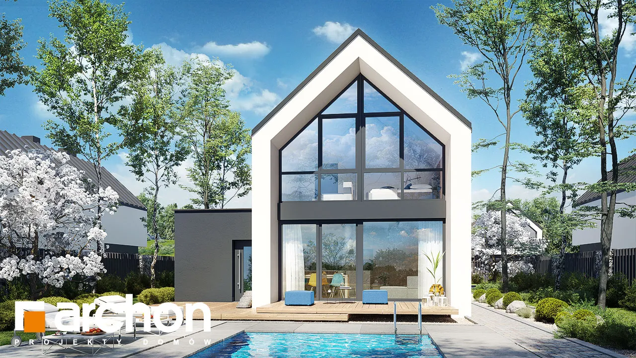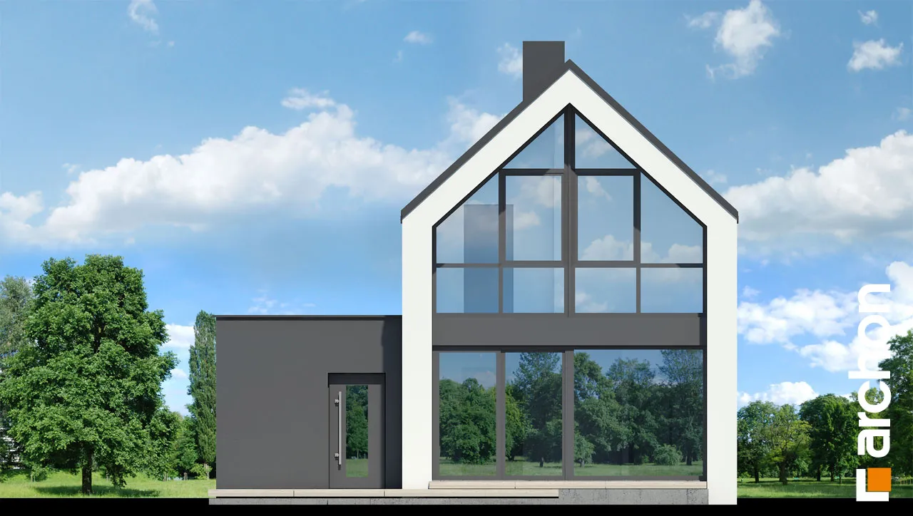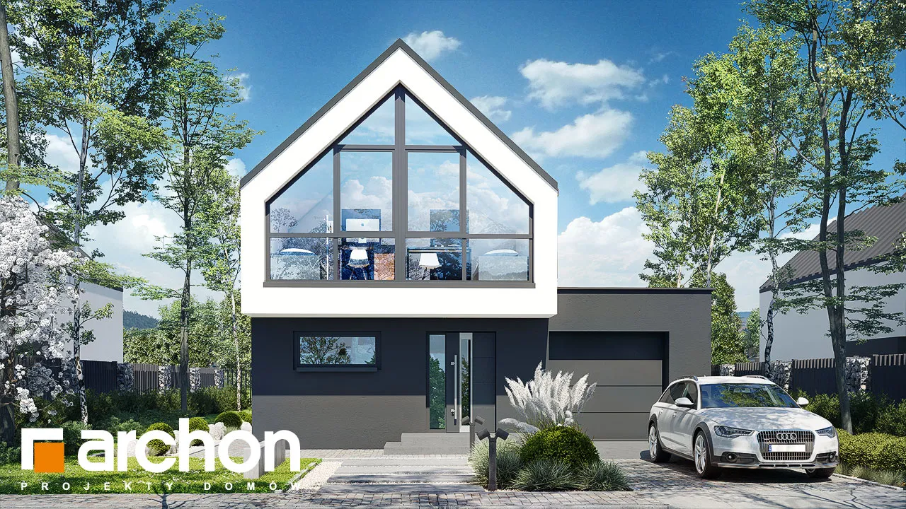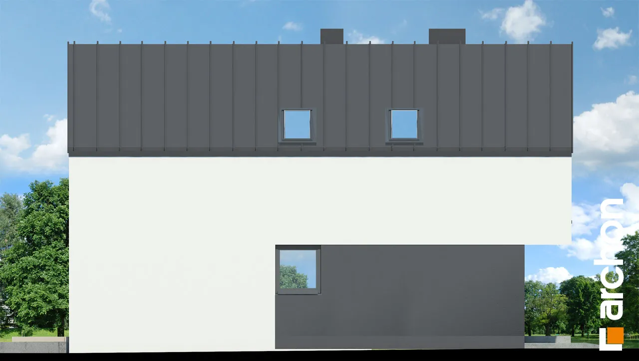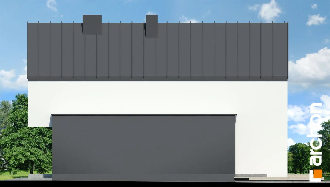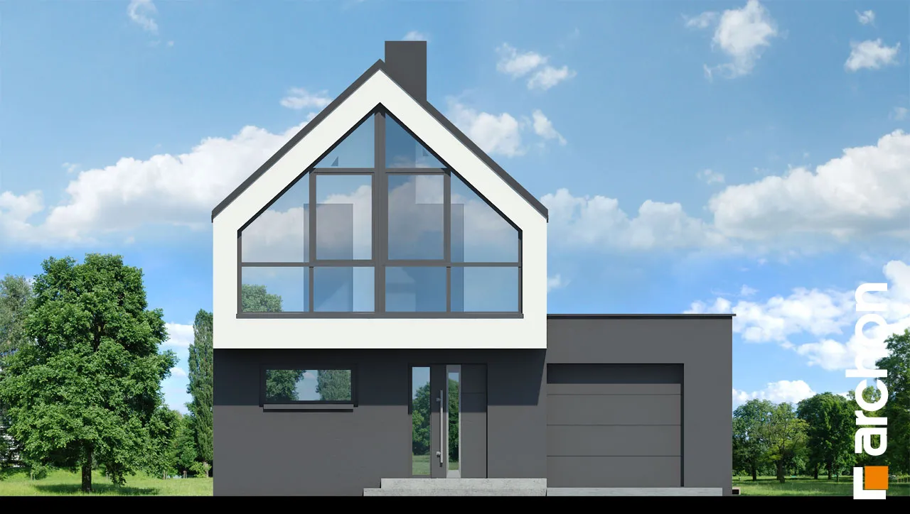 Уникальный проект односемейного дома в современном стиле барнхаус, впечатляющий своим дизайном, предлагающий удобную функциональную программу. Панорамное остекление, спроектированное на фасаде и в саду, повышает декоративную ценность простого корпуса дома. Минималистский характер дома подчеркивает крыша без карниза, а белая и графитовая штукатурка, использованная для отделки фасада, создает модную и элегантную композицию. Гараж интегрирован в тело дома и расположен вдоль боковой стены дома. На первом этаже расположена жилая зона, открытая на террасу, где гостиная плавно соединяется со столовой, а кухня отделена многофункциональным полуостровом. Можно организовать барную стойку для завтрака и удобную столешницу, соединенную с зоной приготовления пищи. Кладовка, спроектированная рядом с кухней, обеспечивает дополнительное место для хранения продуктов, а прихожая дает возможность установить множество вместительных шкафов, в которых поместится одежда, а также различная бытовая техника. На первом этаже не могло не быть туалета, он расположен рядом с тамбуром, через который жильцы могут пройти в гараж и котельную на твердом топливе. В мансарде есть три хорошо расположенные отдельные комнаты, включая большую спальню родителей, из которой открывается панорамный вид на сад благодаря современному остеклению. Ванная комната с ванной и душем завершает функциональную планировку мансарды. "Дом в мускатах" - это готовый проект дома из категории: проекты домов в современном стиле, проекты домов с жилой мансардой, проекты домов с гаражом на одну машину. Предложение включает варианты проекта: дома для сблокированной застройки "Дом в мускатах (Б)" и дом с террасой "Дом в мускатах (С)".
