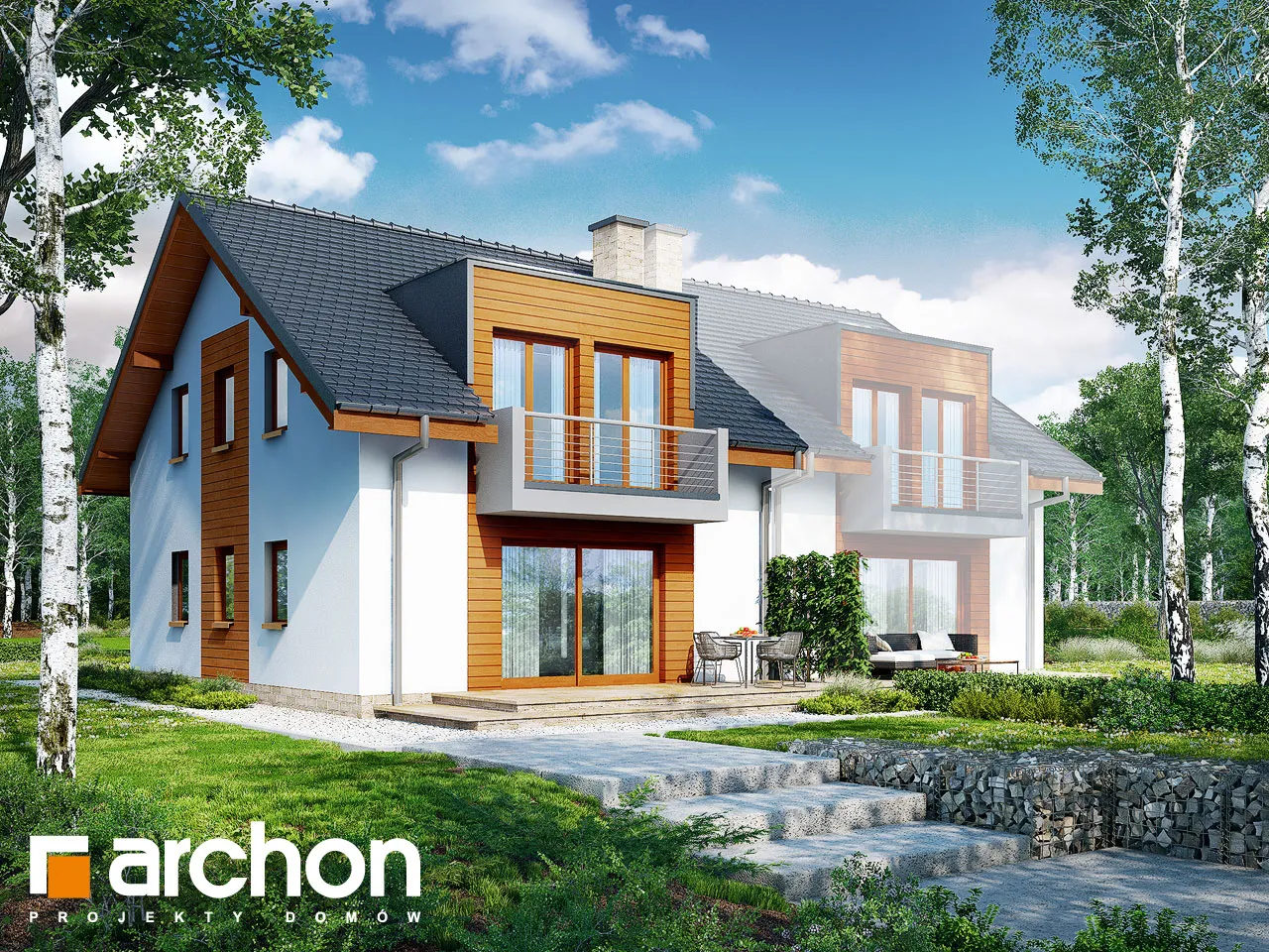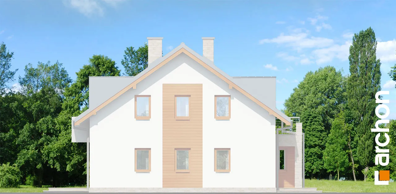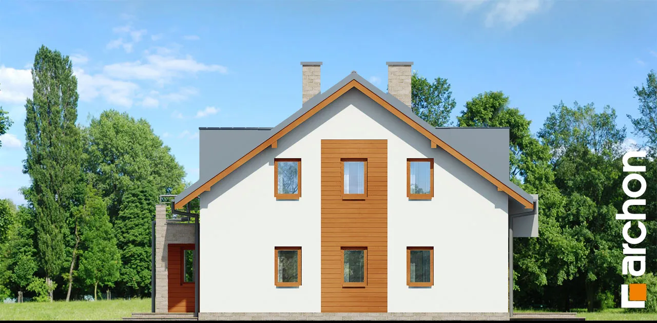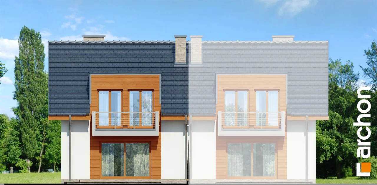 Элегантный дом для сблокированной застройки с функционально продуманной планировкой комнат. Простую форму корпуса дома разнообразят прямоугольные эркеры, а входная зона привлекает внимание практичной аркой. Жилая зона на первом этаже состоит из гостиной с местом для отдыха у домашнего кинотеатра и камина, а также столовой. Удобная терраса является продолжением зоны отдыха, а большое остекление привлекательно освещает интерьер. Открытая кухня соединена со столовой через барную стойку. В хозяйственной части находится гараж, доступный из тамбура. Мансарда была спроектирована как приватная зона для жильцов. К вашим услугам четыре светлых комнаты с балконами и общей ванной комнатой.