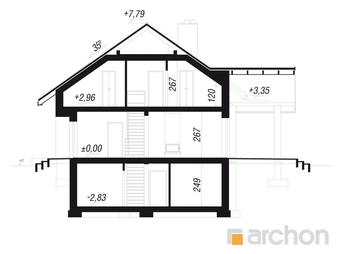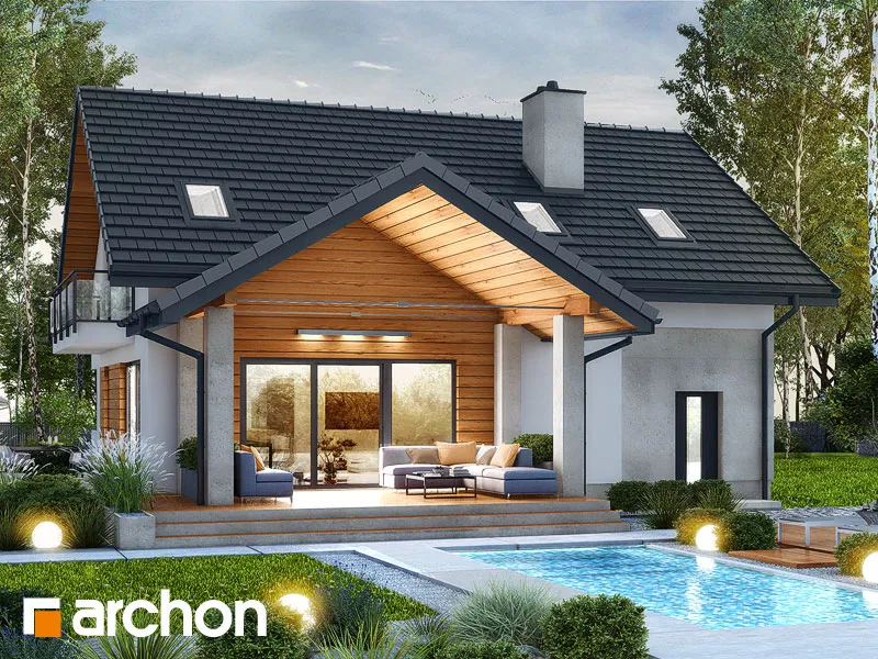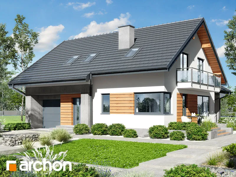Это интересный проект дома с подвалом, рекомендуемый для реализации на участках с уклоном. Здание отличается современной эстетикой фасада, композиция основана на сочетании светлой штукатурки с натуральным деревом и бетонной конструкцией, на которой подчеркнуты отдельные фрагменты. Корпус здания увенчан двускатной крышей, со стороны сада была спроектирована дополнительная трасса, эффектно охватывающая зону террасы. Создано прекрасное место для отдыха на свежем воздухе, идеально подходящее для организации летней гостиной или столовой. Комфортное жилое пространство имеет широкий выход в сад, что добавляет ему привлекательности и, вместе с другими окнами, гарантирует отличное освещение. Гостиная с камином приглашает семью отдохнуть вместе на удобных диванах перед домашним кинотеатром. В столовой установлен большой обеденный стол, а дополнительное обеденное пространство обеспечивает барная стойка, спроектированная на кухонном полуострове, совмещенная с удобной столешницей. На меньшую террасу можно выйти из кухни, где можно организовать кофейный уголок. Преимуществом кухни также является высокая встроенная мебель и большое количество естественного света, что повышает комфорт работы. Функциональная планировка первого этажа также включает светлую ванную комнату с душем, а быстрый доступ в гараж возможен через тамбур. Второй вход в гараж предусмотрен рядом с лестницей. Идеальные условия для уединенного отдыха предлагает домовладельцам тщательно продуманная ночная зона на чердаке. Есть просторная спальня родителей с вместительной гардеробной и удобным большим письменным столом или туалетным столиком у окна. Для детей спроектированы две просторные комнаты, между которыми имеется доступ к общему гардеробу. На общий балкон можно выйти из спальни родителей и одной детской комнаты. В мансарде семья также имеет в своем распоряжении удобную ванную комнату с практичным набором умывальников и просторную прачечную. Хозяйственная зона подвала включает в себя котельную, кладовую и две дополнительные комнаты. "Дом в аурорах 7 (П)" относится к категории: проекты домов с жилой мансардой, проекты домов в современном стиле, проекты домов с подвалом.