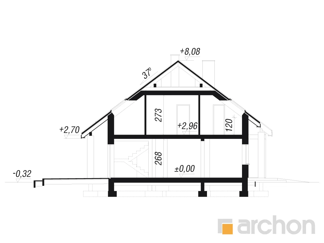 - Разрезы со всеми размерами (высоты этажей, кровли и др.)