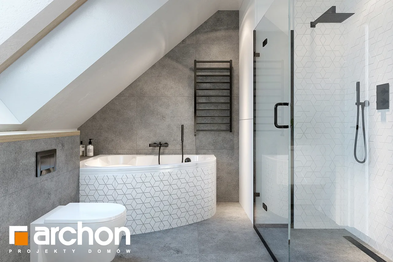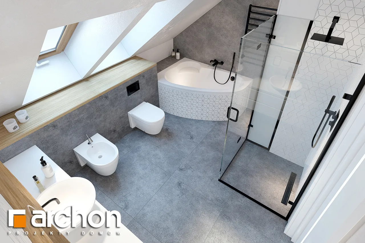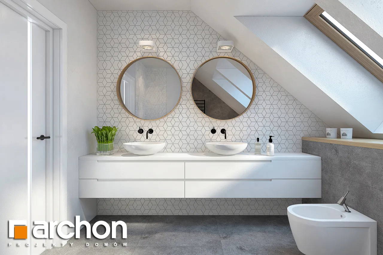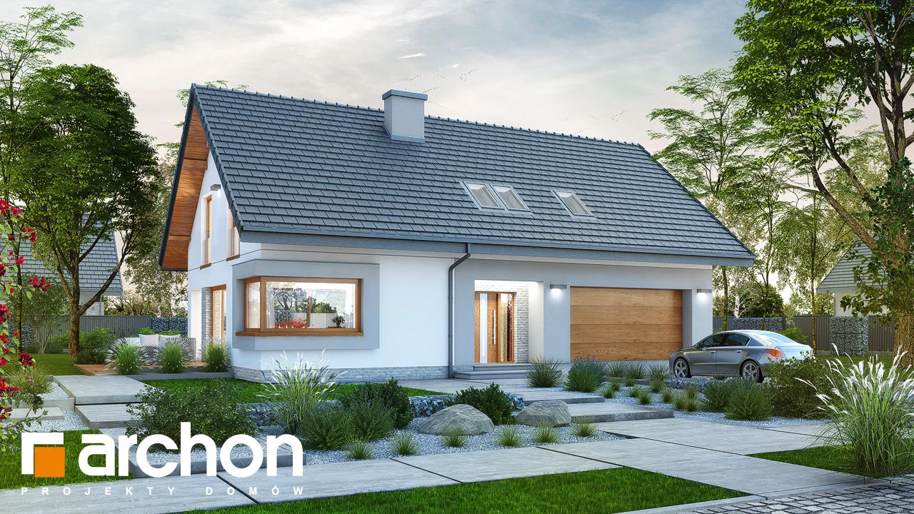 Представляем дом от популярной среди инвесторов семьи "Изопирум" в варианте с гаражом на две машины. Это интересное предложение для тех, кто ищет дома с привлекательным внешним видом, функциональным интерьером, которые могут быть построены на участках с входом с юга. В современной отделке фасада использовалась двухцветная штукатурка и клинкерная облицовка. Элегантности простому массиву добавляют застекленные балюстрады, а оригинальное угловое окно является настоящим украшением парадной зоны. Практически крытый вход в арке ведет внутрь, а далее через просторный вестибюль, в котором находится гардероб и вешалка для пальто и курток, мы попадаем в прекрасно освещенную жилую зону первого этажа. Гостиная с угловым диваном перед домашним кинотеатром и камином - идеальное место для совместного семейного отдыха. Столовая, расположенная в застекленном углу, представляет собой прекрасное место. В этой части дома также имеется широкий проем на частично крытую террасу, где можно устроить кофейный уголок или летнюю столовую, тем более что туда можно попасть и из кухни. Кухонная зона с окном, параллельным расположением шкафов и удобной кладовой - очень удобное место для приготовления пищи. Ванная комната с душем, расположенная на первом этаже, очень положительно влияет на комфорт пользования домом. Подсобные помещения дома, состоящие из гаража на две машины и котельной, доступны из тамбура. Исключительный комфорт жильцам обеспечивает тщательно продуманная ночная зона в мансарде. В четырех прекрасно освещенных спальнях достаточно места для сна, есть удобная зона для учебы, а также вместительные шкафы. В комнате родителей дополнительно предусмотрен шкаф для одежды. Программа мансарды дополнена светлой, полностью оборудованной ванной комнатой и большой прачечной с функцией сушилки. "Дом в изопируме (Г2)" относится к коллекции: проекты домов с гаражом на две машины, проекты современных домов, проекты домов для участков с въездом с юга.