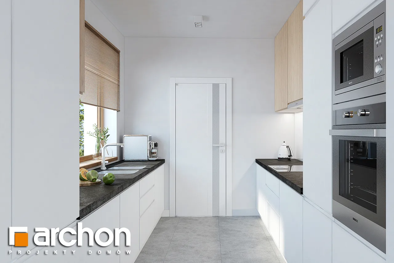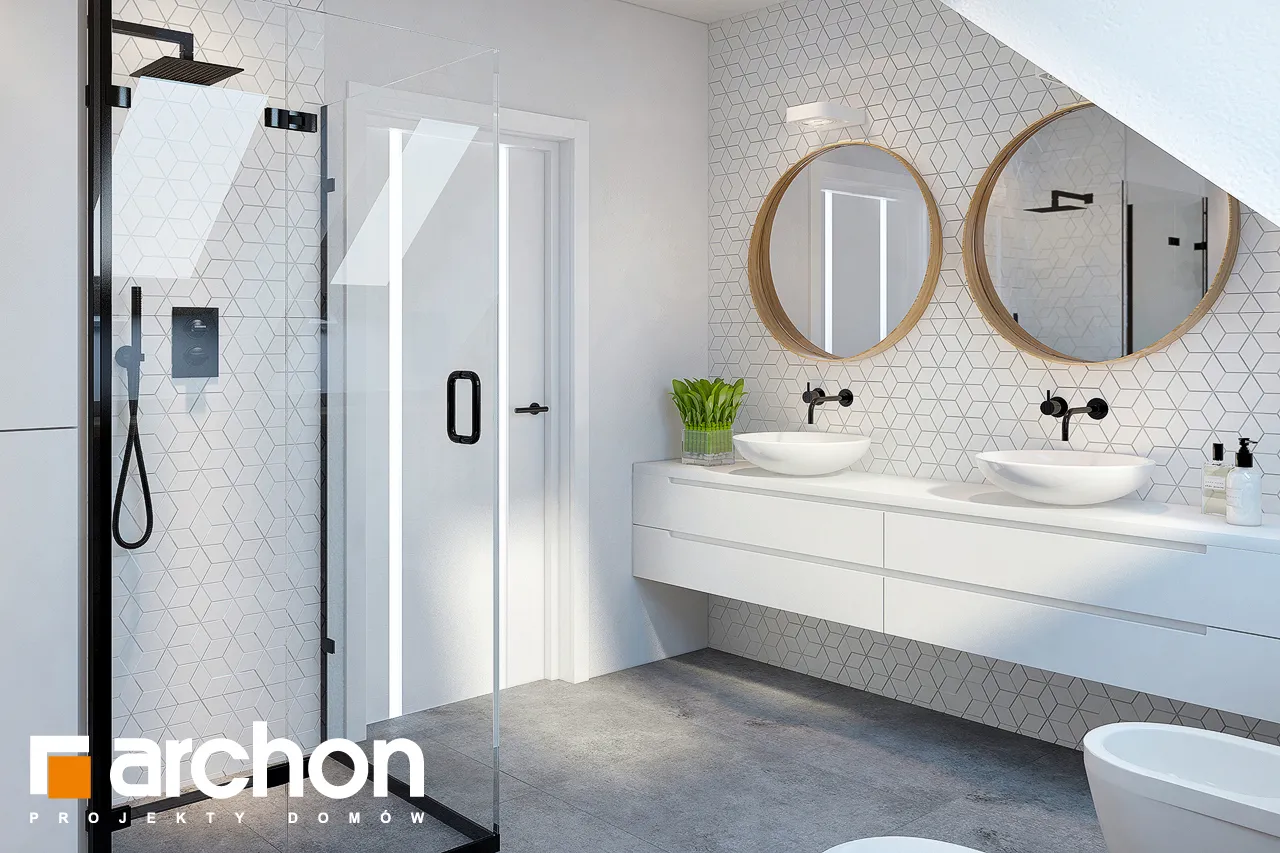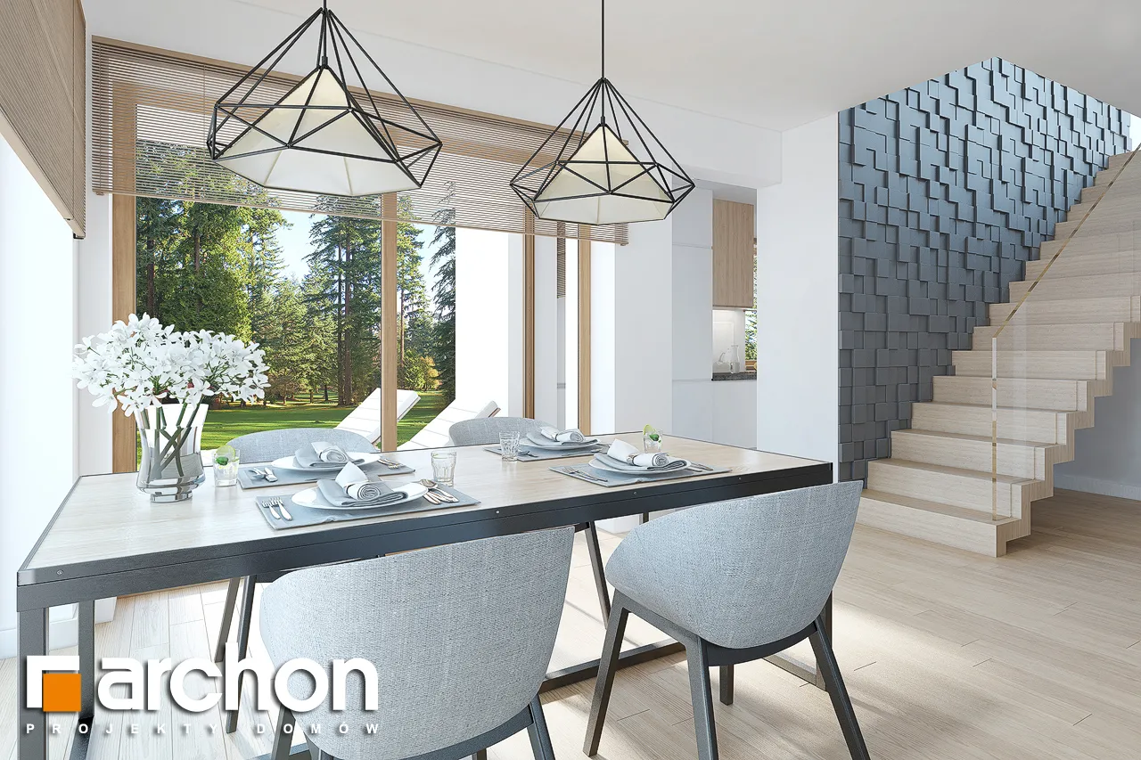 Представляем дом от популярной среди инвесторов семьи "Изопирум" в варианте с гаражом на две машины. Это интересное предложение для тех, кто ищет дома с привлекательным внешним видом, функциональным интерьером, которые могут быть построены на участках с входом с юга. В современной отделке фасада использовалась двухцветная штукатурка и клинкерная облицовка. Элегантности простому массиву добавляют застекленные балюстрады, а оригинальное угловое окно является настоящим украшением парадной зоны. Практически крытый вход в арке ведет внутрь, а далее через просторный вестибюль, в котором находится гардероб и вешалка для пальто и курток, мы попадаем в прекрасно освещенную жилую зону первого этажа. Гостиная с угловым диваном перед домашним кинотеатром и камином - идеальное место для совместного семейного отдыха. Столовая, расположенная в застекленном углу, представляет собой прекрасное место. В этой части дома также имеется широкий проем на частично крытую террасу, где можно устроить кофейный уголок или летнюю столовую, тем более что туда можно попасть и из кухни. Кухонная зона с окном, параллельным расположением шкафов и удобной кладовой - очень удобное место для приготовления пищи. Ванная комната с душем, расположенная на первом этаже, очень положительно влияет на комфорт пользования домом. Подсобные помещения дома, состоящие из гаража на две машины и котельной, доступны из тамбура. Исключительный комфорт жильцам обеспечивает тщательно продуманная ночная зона в мансарде. В четырех прекрасно освещенных спальнях достаточно места для сна, есть удобная зона для учебы, а также вместительные шкафы. В комнате родителей дополнительно предусмотрен шкаф для одежды. Программа мансарды дополнена светлой, полностью оборудованной ванной комнатой и большой прачечной с функцией сушилки. "Дом в изопируме (Г2)" относится к коллекции: проекты домов с гаражом на две машины, проекты современных домов, проекты домов для участков с въездом с юга.