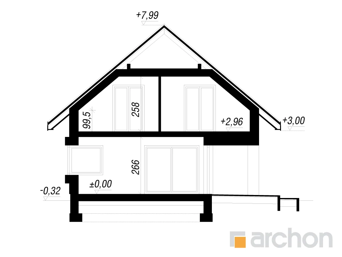 - Разрезы со всеми размерами (высоты этажей, кровли и др.)