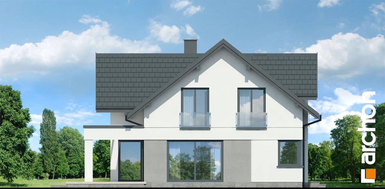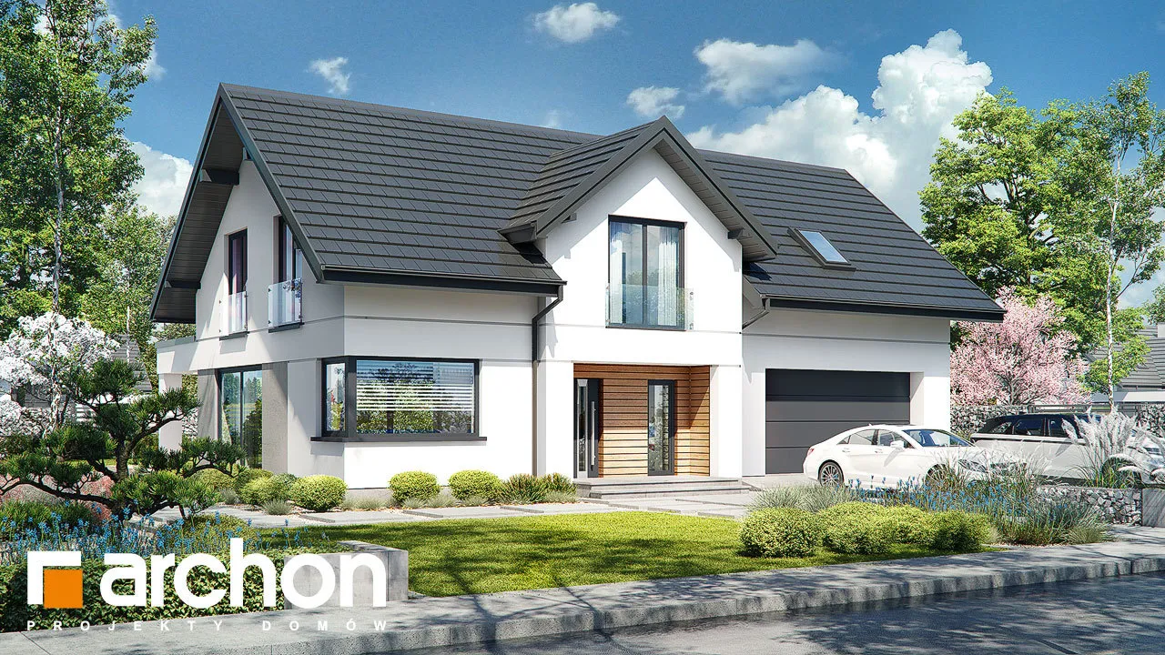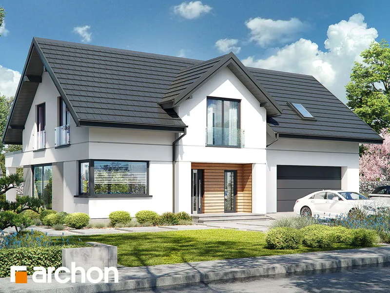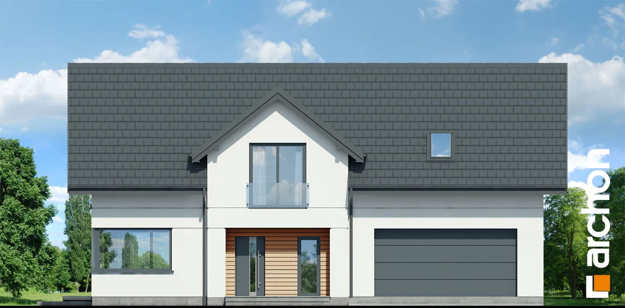 Просторный дом с жилой мансардой и гаражом, вписанным в тело здания. Это проект с механической вентиляцией в стандартной комплектации. Входная зона, подчеркнутая большим мансардным окном, приобрела представительный характер, а защиту от дождя или снега обеспечивает функциональная арка. Со стороны сада великолепно смотрятся пергола, создающая завесу над террасой. Жилое пространство очаровывает впечатляющим открытием потолка над гостиной. Удобная гостиная, расположенная перед домашним кинотеатром, и камин создают комфортное пространство для семейного отдыха, которое дополняется панорамным видом на зеленый сад. Кухня может быть оборудована функциональной встроенной конструкцией с барной стойкой, просторными столешницами и зоной для мытья посуды возле углового окна. Функциональную планировку первого этажа дополняет санузел, расположенный рядом с лестницей на мансарду, а гардеробная комната предусмотрена в тамбуре, откуда жильцы имеют доступ к подсобному помещению. Он включает в себя гараж на две машины и котельную. Привлекательным элементом интерьера является одномаршевая лестница. Ночное пространство состоит из трех уютных спален, хорошо освещенных благодаря широким портьерам, среди которых есть и комната родителей с гардеробом. Приватная зона дома также включает в себя большую ванную комнату, прачечную с сушкой и местом для хранения, а также чердак. Антресоли с захватывающим видом на сад могут служить в качестве студии. "Дом в чемпионах (Г2Е)" - это интересное предложение, которое относится к следующим категориям: проекты домов с жилой мансардой, проекты домов в современном стиле, проекты домов с гаражом на две машины, проекты домов с антресолями, проекты домов с механической вентиляцией.