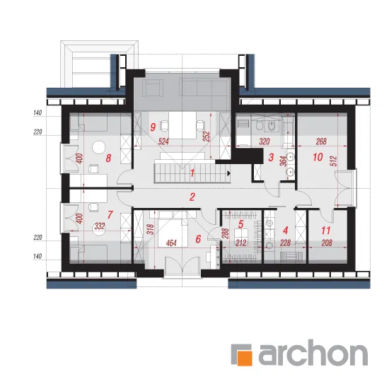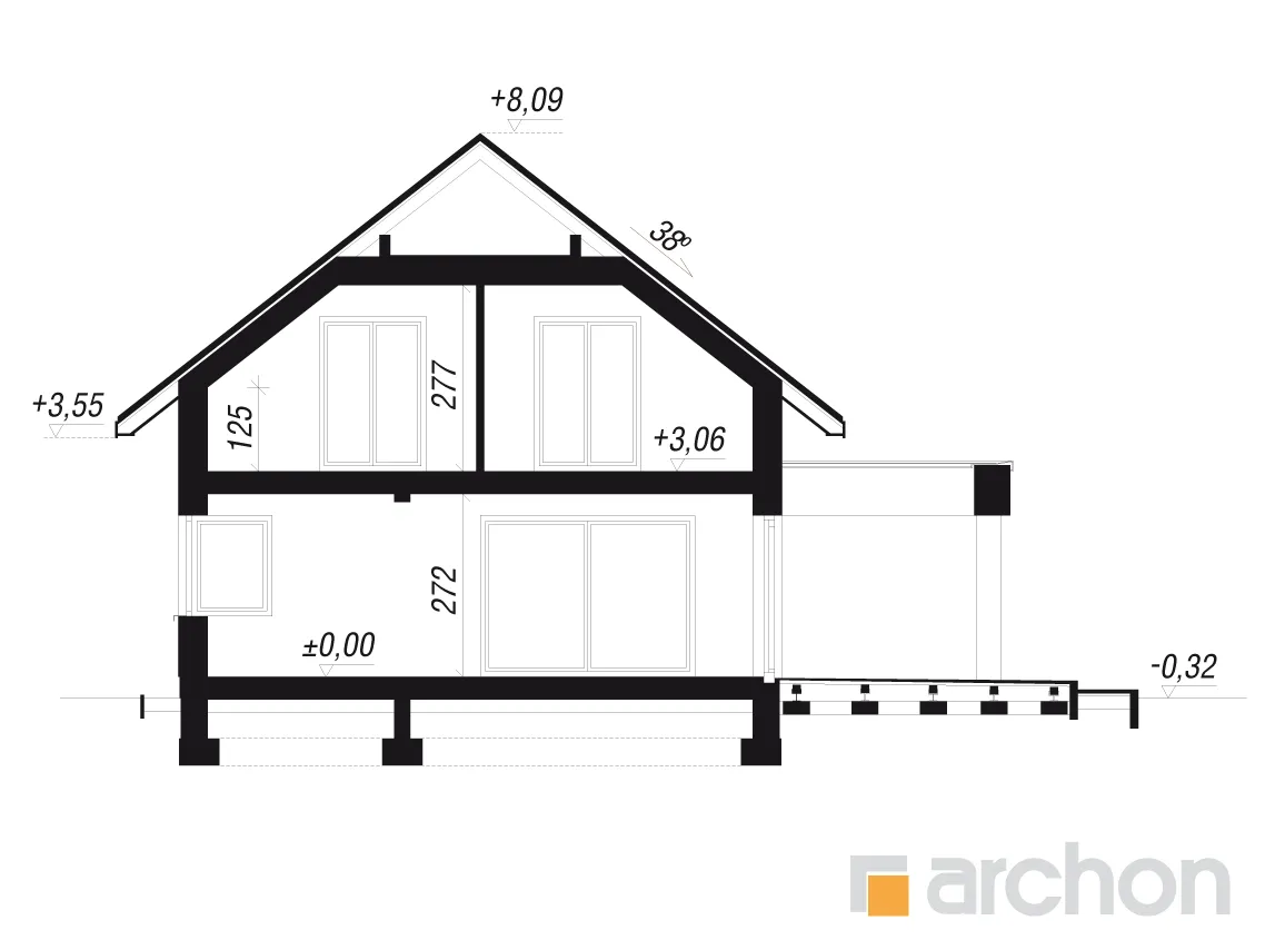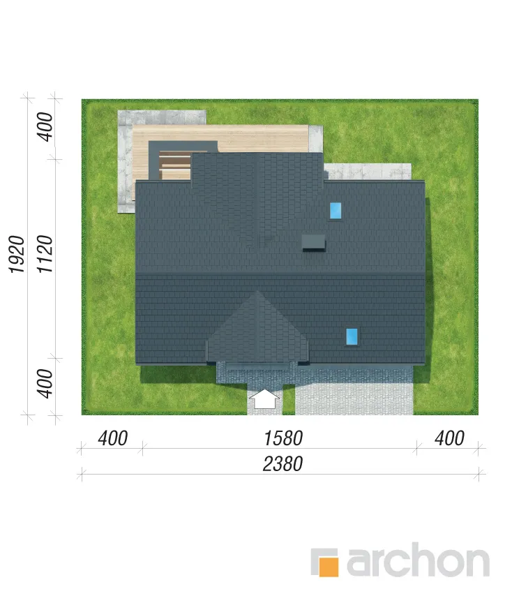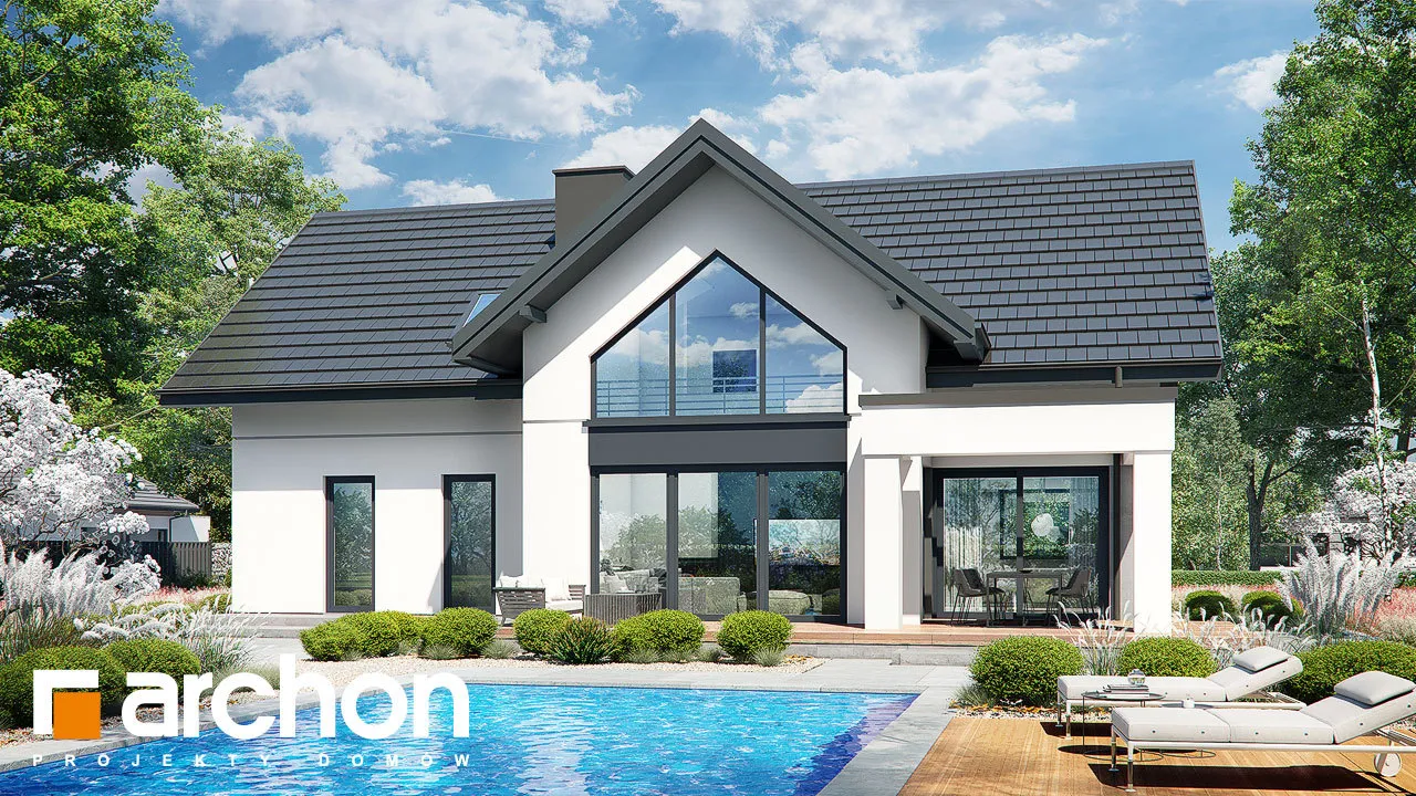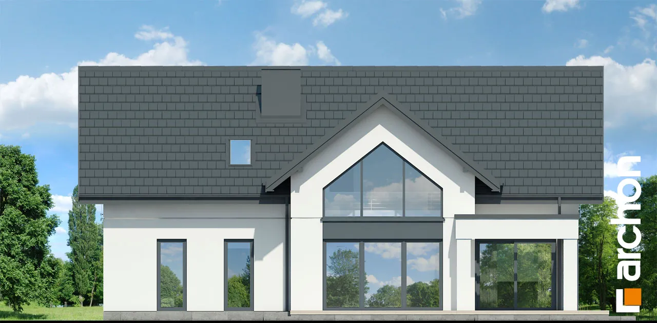 Просторный дом с жилой мансардой и гаражом, вписанным в тело здания. Это проект с механической вентиляцией в стандартной комплектации. Входная зона, подчеркнутая большим мансардным окном, приобрела представительный характер, а защиту от дождя или снега обеспечивает функциональная арка. Со стороны сада великолепно смотрятся пергола, создающая завесу над террасой. Жилое пространство очаровывает впечатляющим открытием потолка над гостиной. Удобная гостиная, расположенная перед домашним кинотеатром, и камин создают комфортное пространство для семейного отдыха, которое дополняется панорамным видом на зеленый сад. Кухня может быть оборудована функциональной встроенной конструкцией с барной стойкой, просторными столешницами и зоной для мытья посуды возле углового окна. Функциональную планировку первого этажа дополняет санузел, расположенный рядом с лестницей на мансарду, а гардеробная комната предусмотрена в тамбуре, откуда жильцы имеют доступ к подсобному помещению. Он включает в себя гараж на две машины и котельную. Привлекательным элементом интерьера является одномаршевая лестница. Ночное пространство состоит из трех уютных спален, хорошо освещенных благодаря широким портьерам, среди которых есть и комната родителей с гардеробом. Приватная зона дома также включает в себя большую ванную комнату, прачечную с сушкой и местом для хранения, а также чердак. Антресоли с захватывающим видом на сад могут служить в качестве студии. "Дом в чемпионах (Г2Е)" - это интересное предложение, которое относится к следующим категориям: проекты домов с жилой мансардой, проекты домов в современном стиле, проекты домов с гаражом на две машины, проекты домов с антресолями, проекты домов с механической вентиляцией.