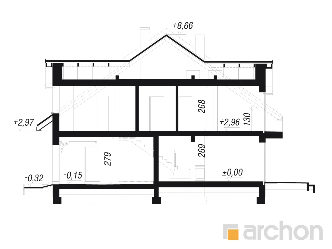 - Разрезы со всеми размерами (высоты этажей, кровли и др.)