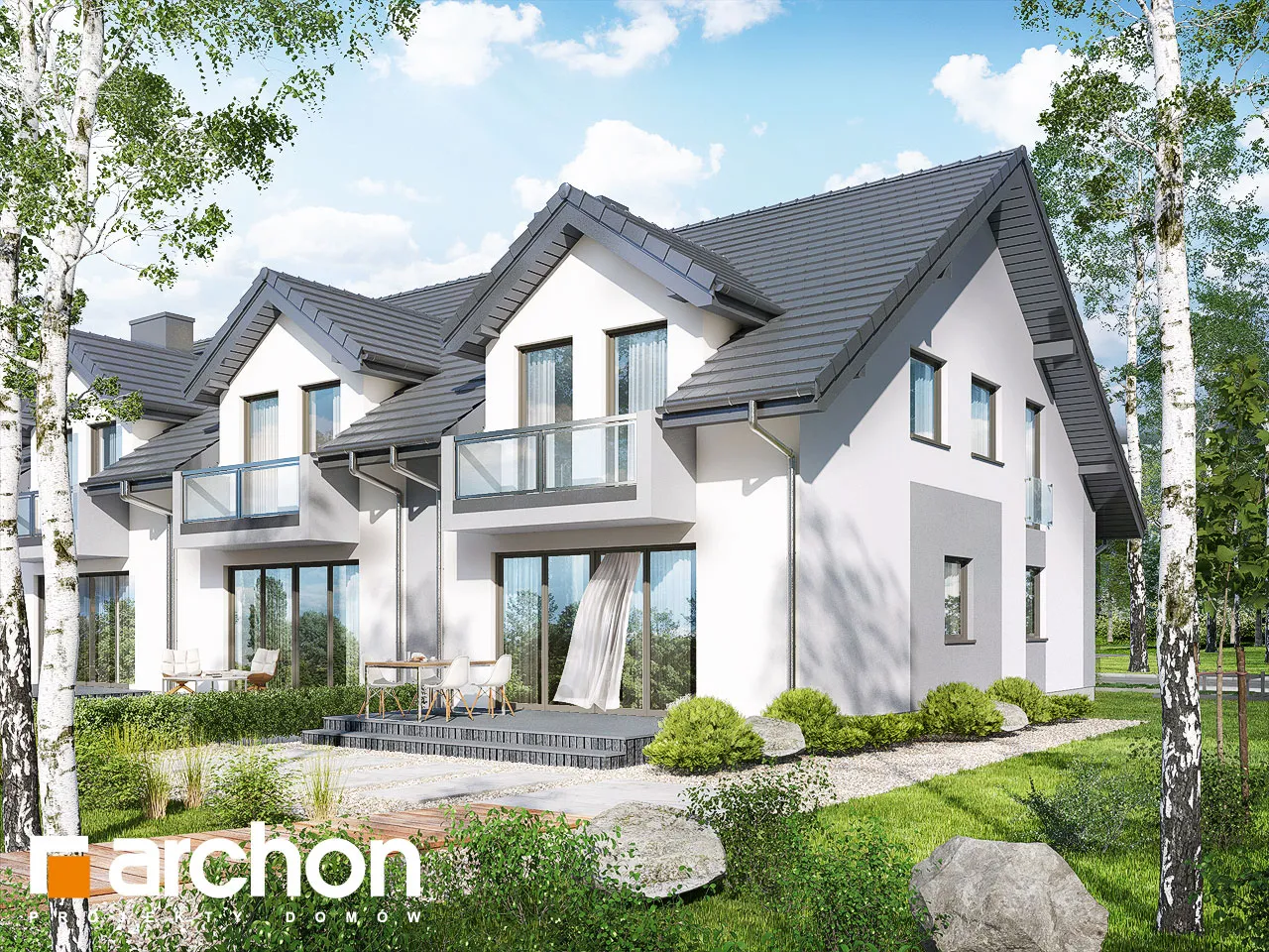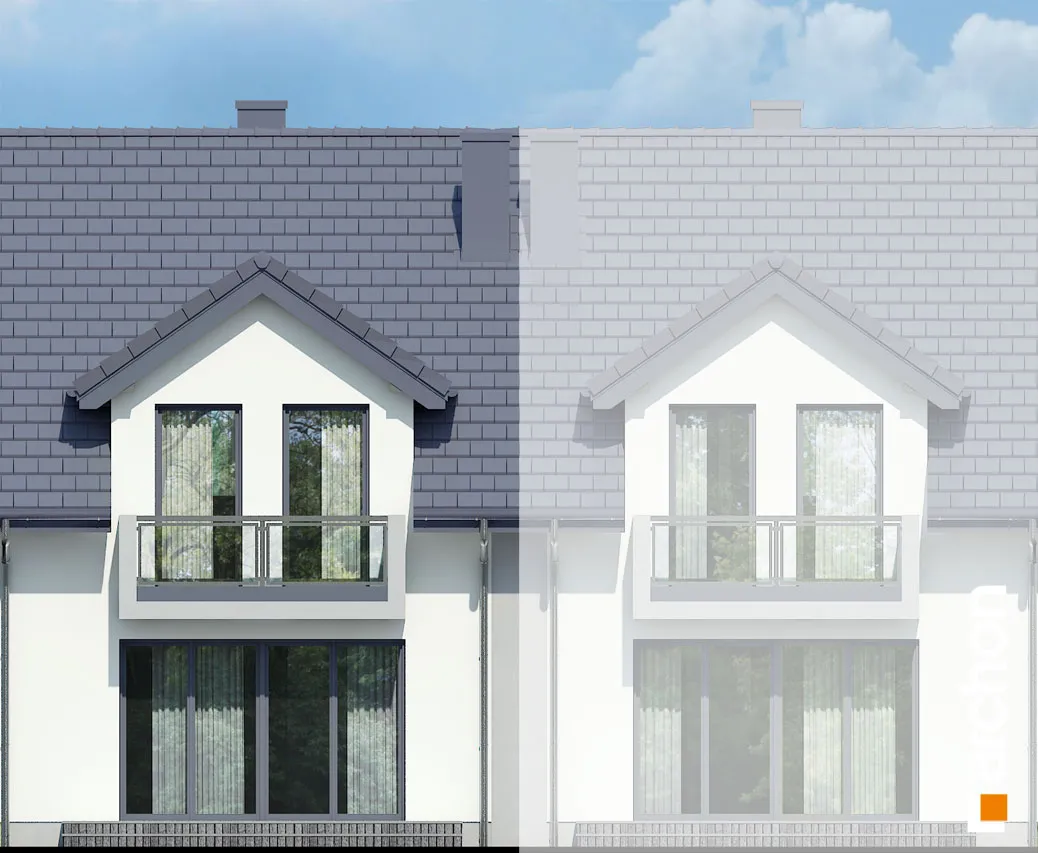 Простой и элегантный дом в современном стиле, предназначенный для рядовой застройки. Жилая зона на первом этаже состоит из гостиной с большими стеклянными окнами и открытой кухни. Терраса является привлекательным продолжением дневной зоны дома. В хозяйственной части находится гараж, доступный из тамбура. Мансарда состоит из трех уютных комнат, освещенных балконной дверью, и ванной комнаты. Рядом со спальней родителей был спроектирован гардероб.