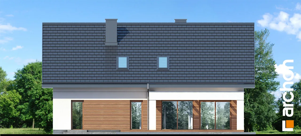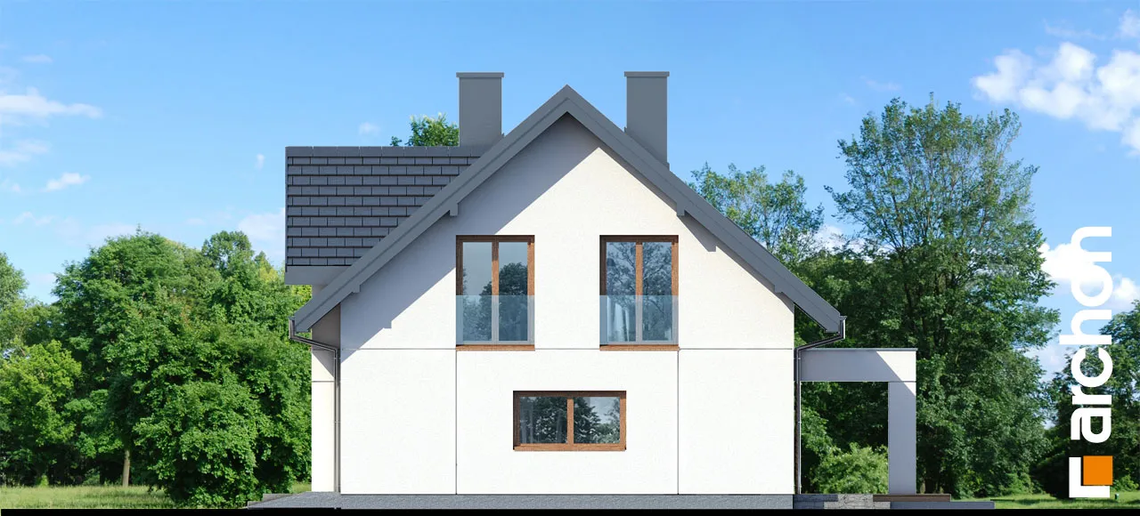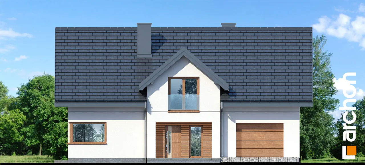 Проект современного дома с жилой мансардой и одноместным гаражом. Внимание привлекает фронтальный дормер с эффектной аркой, укрывающий главный вход. Натуральная облицовка, используемая для отделки, прекрасно сочетается со светлой штукатуркой и прекрасно гармонирует с деревянными изделиями. Интересным элементом дома является терраса-пергола, благодаря которой была создана очень привлекательная зона летнего отдыха на открытом воздухе. Здесь предусмотрено место для обеда и кофейный уголок. Жилая зона, полная естественного света, представляет собой комфортное пространство для совместного отдыха всей семьи, где гостиная плавно соединяется со столовой, открытой на террасу. Его размеры позволяют накрыть большой стол, который можно еще больше расширить во время больших вечеринок. Кухня с угловым окном имеет оптимальное количество пространства для работы и хранения, в ее центре находится остров с барной стойкой, а функциональную программу дополняет прилегающая кладовая. Комфорт пользования домом повышается благодаря дополнительной комнате, спроектированной на первом этаже, назначение которой жильцы могут регулировать в соответствии со своими потребностями. Безусловно, он прекрасно подойдет в качестве кабинета или гостевой спальни, а привлекательности ему добавляет прямой выход на террасу. Рядом с лестницей находится ванная комната с душем, а рядом с тамбуром спроектирован гардероб, благодаря которому будет легче поддерживать порядок в прихожей. Подсобные помещения дома включают в себя одноместный гараж с кладовой и котельную на твердом топливе. Ночная зона в мансарде включает в себя две детские комнаты, спальню родителей, которая получила больше пространства благодаря мансардному окну, а также полностью оборудованную ванную комнату и прачечную. Над гаражом есть мансарда с естественным освещением, которую можно использовать для жилых целей. "Дом в коммифорах 4" - это готовый проект дома из коллекции: проекты современных домов, проекты домов с кабинетом на первом этаже.