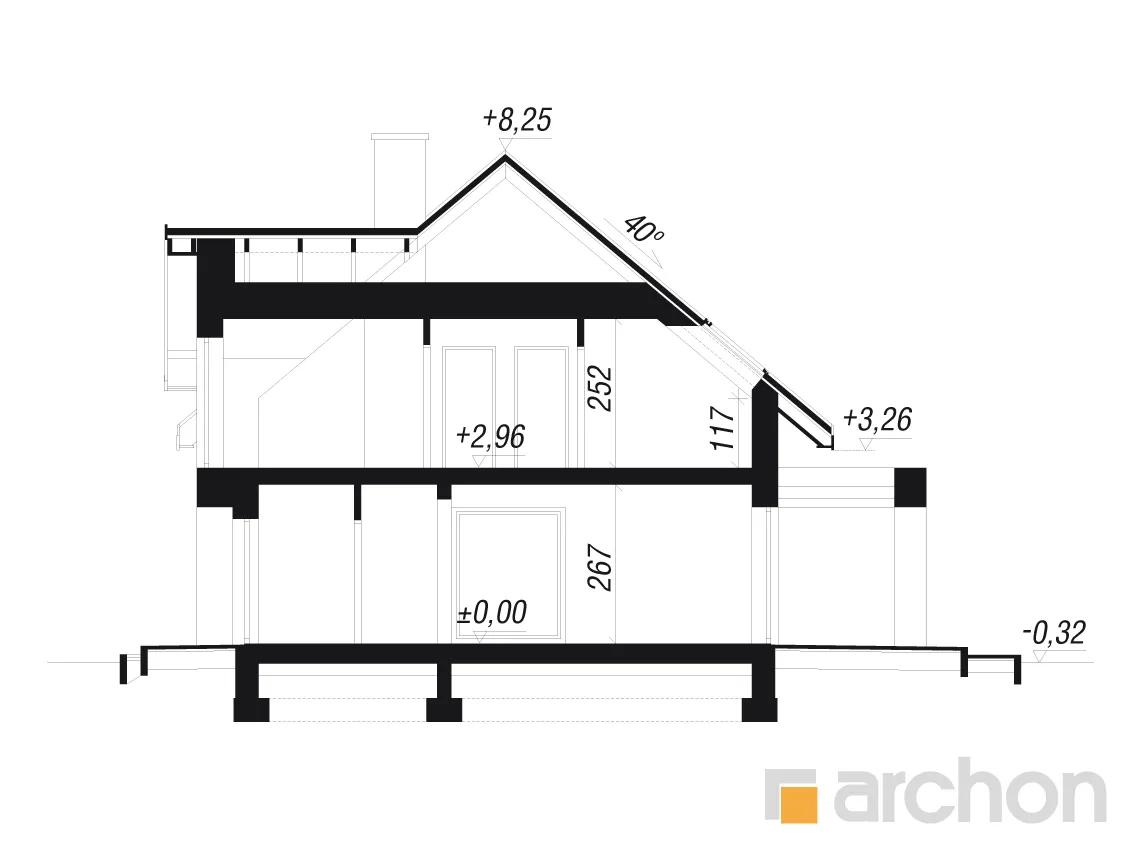 - Разрезы со всеми размерами (высоты этажей, кровли и др.)