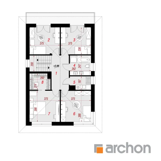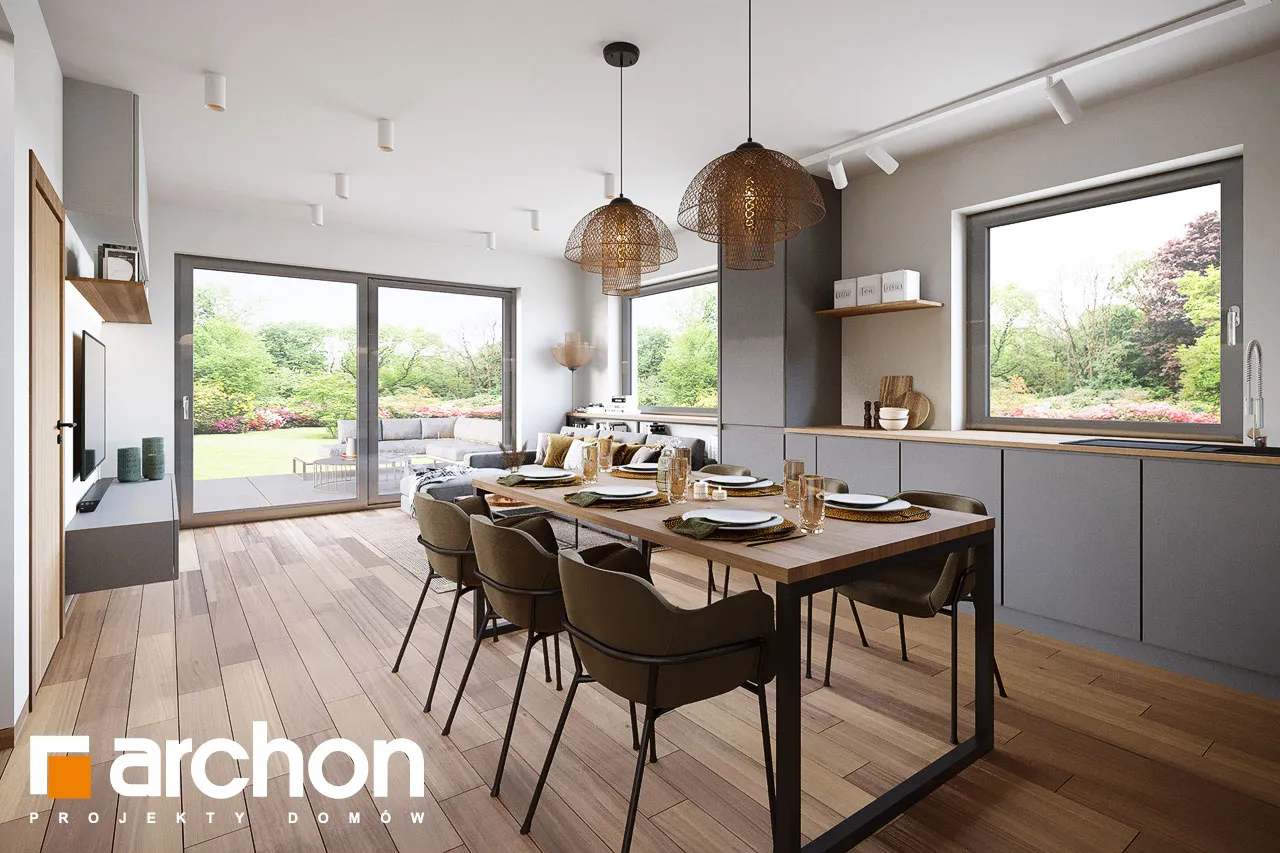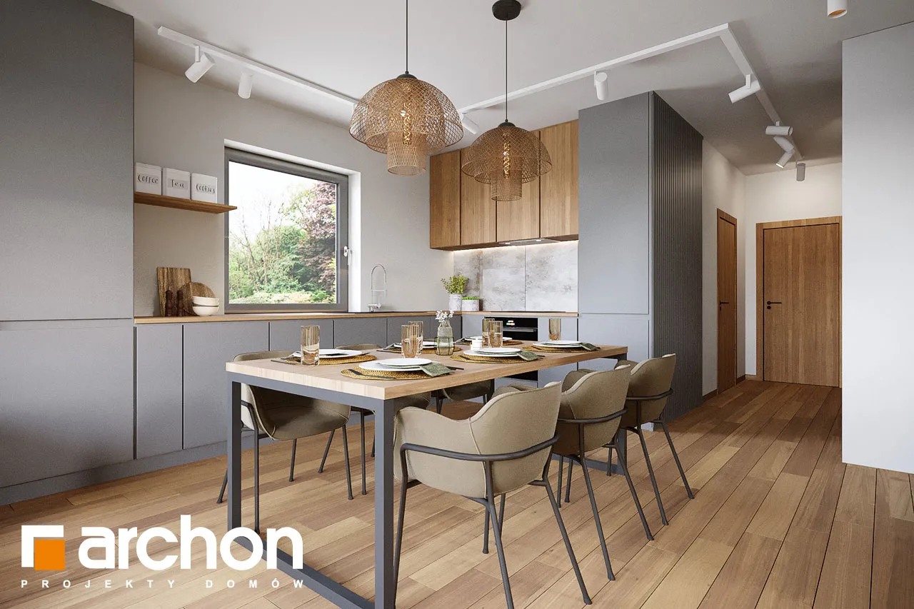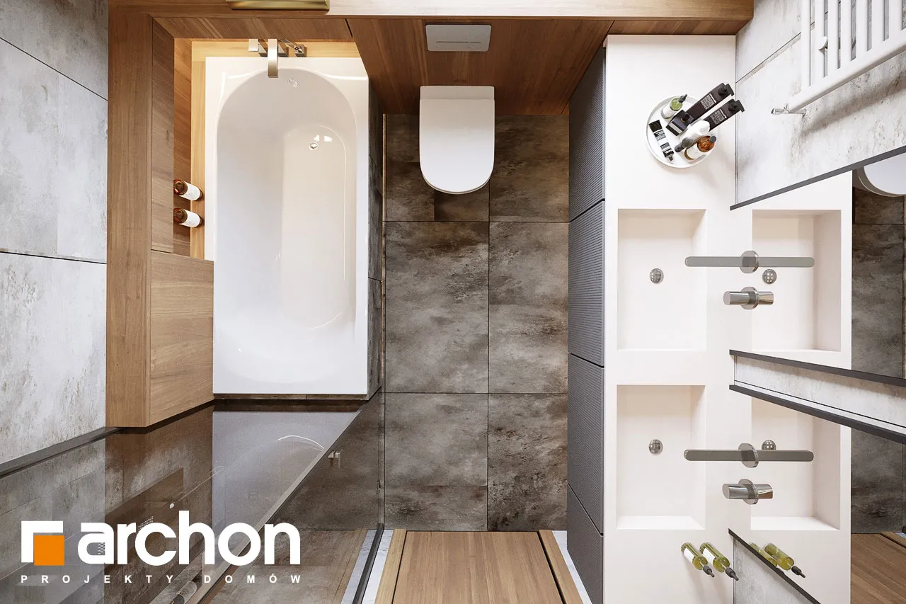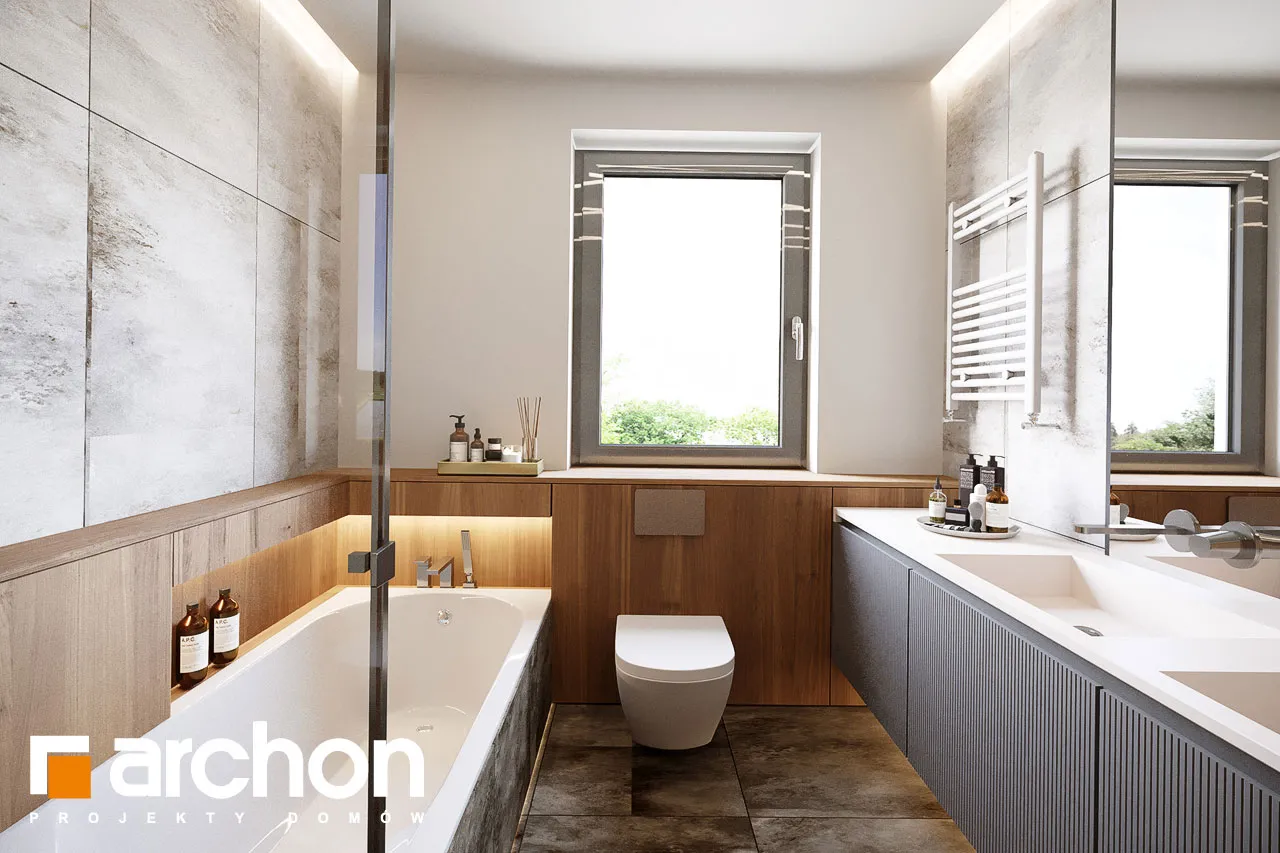 Мы представляем проект двухэтажной виллы с простым, современным корпусом. Белый цвет хорошо сочетается с деревянными изделиями и плиткой графитового цвета, с поверхностями, покрытыми деревянной облицовкой, а также с бетонной структурой, которая была использована для выделения отдельных фрагментов стен здания. Вход на виллу расположен в тихой арке. Вестибюль с высоким остеклением, обеспечивающим идеальное освещение, с вешалками для одежды и удобным сиденьем, соединяется с большим холлом, где предусмотрено место для вместительных шкафов. Жилая зона включает гостиную с мини-кухней с естественным освещением. В центральной части есть место для большого семейного стола. Дополнительное место для хранения обеспечивает кладовая, расположенная под лестницей. Гостиная прекрасно освещена большим окном и широким раздвижным остеклением, которое соединяет ее с просторной садовой террасой, частично закрытой балконом второго этажа. Постояльцы могут организовать здесь комфортную зону отдыха с набором садовой мебели. Рядом с гостиной спроектирована дополнительная комната, которая может служить кабинетом, привлекательности которой добавляет прямая связь с садом. В ванную комнату с душем можно попасть из прихожей, где за раздвижной дверью скрывается котельная. Через тамбур ведет быстрый проход в одноместный гараж. В ночной зоне на втором этаже виллы спроектированы четыре светлые и уютные комнаты, в которых есть место для кровати, письменного стола и шкафов. Две комнаты имеют выход на общий балкон со стороны сада, третья освещается большим угловым остеклением, а комната родителей оборудована гардеробом. Из вестибюля частной зоны можно попасть в удобную ванную комнату с ванной и душем и прилегающую прачечную, обе они имеют естественное освещение. "Вилла Андреа" относится к категории: проекты двухэтажных домов, проекты современных домов, проекты домов с кабинетом на первом этаже, проекты домов с гаражом, проекты вилл и резиденций.