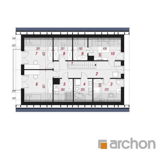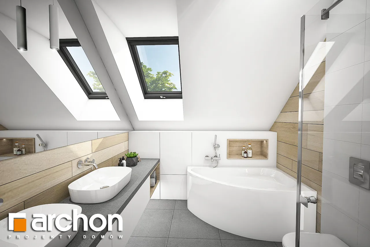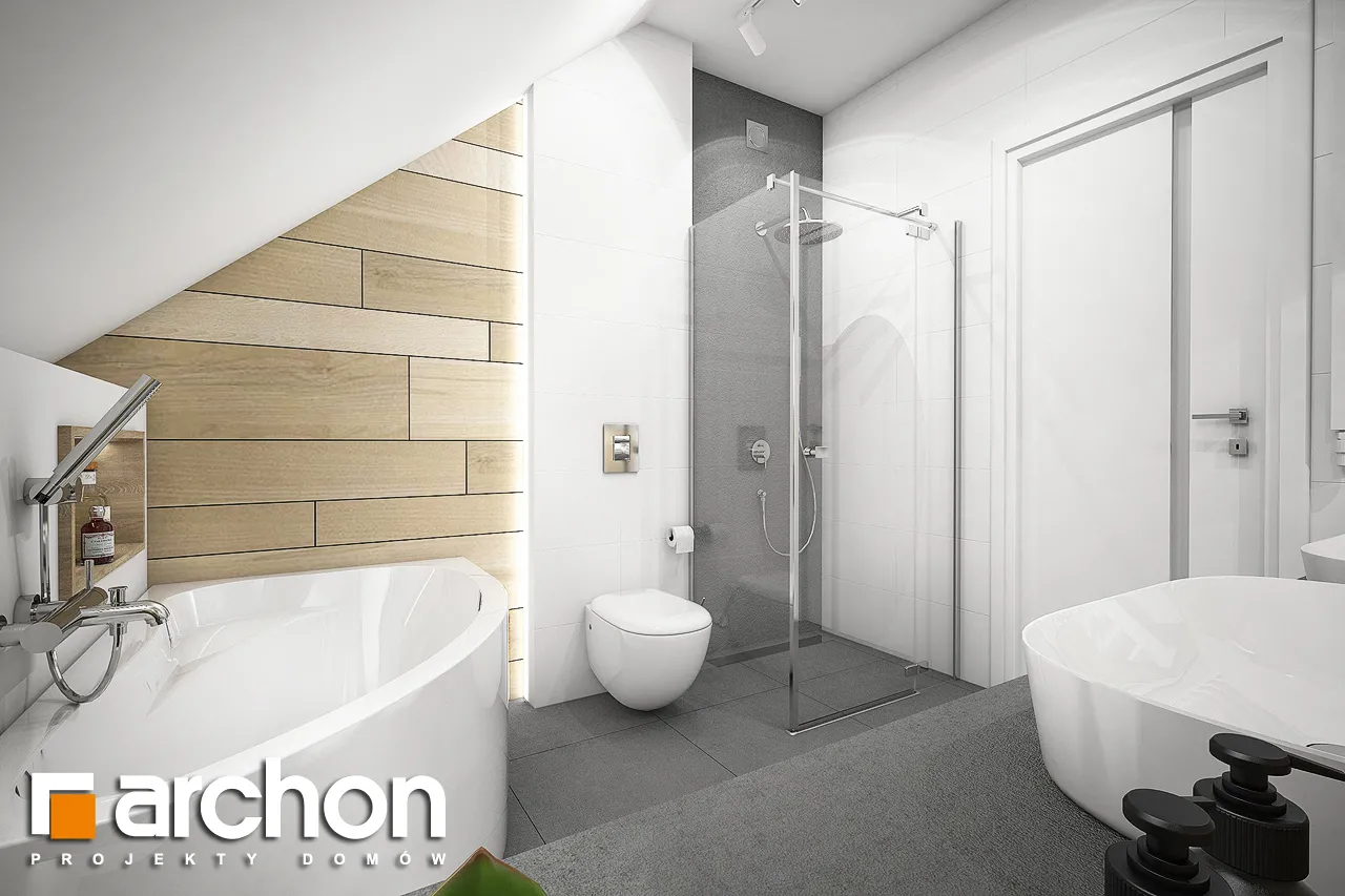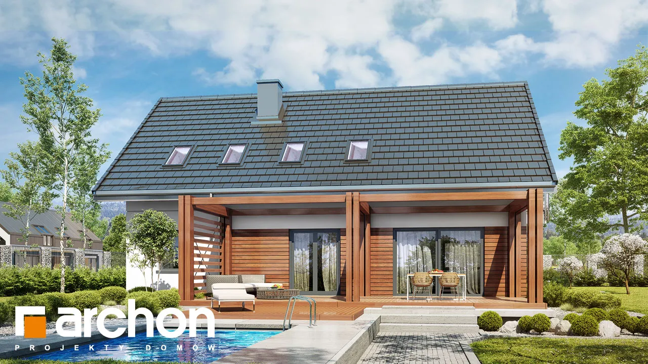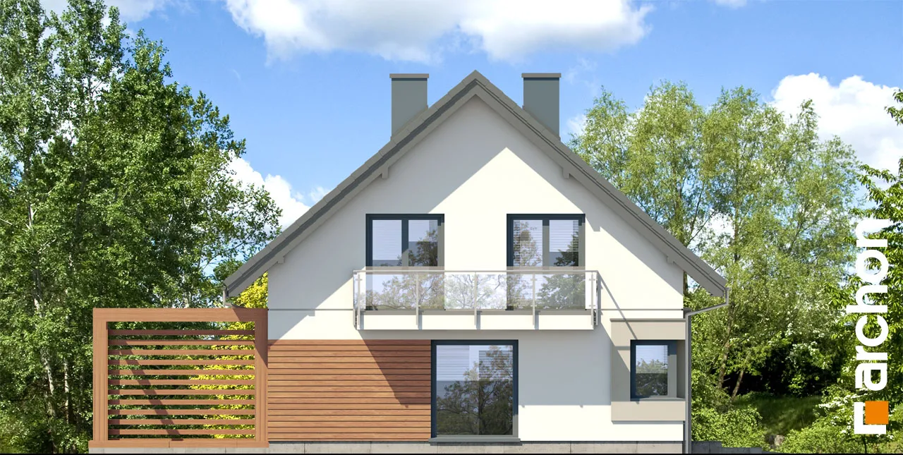 Это увеличенная версия проекта "Дом в гвоздиках", в котором было изменено расположение комнат в мансарде. Благодаря простой форме и примененным архитектурным решениям проект будет реализован эффективно и экономично. Двускатная крыша покрыта плоской черепицей антрацитового цвета, к которой соответствующим образом подобраны тона деревянной отделки. Современный облик дома обеспечивается интересным сочетанием фасадных материалов и деталей. Одно из них - угловое окно, выделенное рамой из более темной штукатурки. Терраса, покрытая перголой, является уютным местом для отдыха, где размещается как обеденная часть, так и часть для отдыха. Правильно расположенное остекление обеспечивает оптимальное поступление солнечного света в жилую зону. В гостиной установлены широкие двери на террасу с раздвижной системой открывания, что расширяет возможности дизайна интерьера. У большого окна в столовой можно накрыть удобный обеденный стол для всей семьи, а на полуострове, отделяющем столовую от кухни, расположены шкафы для хранения столовой посуды. Светлая, просторная кухня предлагает комфортные условия для работы, с просторными столешницами, высокими шкафами и кладовой. Комната рядом с гостиной с широким выходом на террасу может быть использована в качестве кабинета. Из тамбура можно попасть в гараж и далее в котельную на твердом топливе. Мансарда - это приватное пространство дома, где четыре комнаты предлагают комфортный отдых, включая спальню родителей с гардеробом. Вторая гардеробная, общая для всех членов семьи, доступна из прихожей. В программе мансарды также предусмотрена удобная ванная комната с местом для ванны и душа, а также просторная прачечная с функцией сушилки. "Дом в Гоздиковцах 3" рекомендуется для реализации на участках с входом с юга, относится к популярным коллекциям: проекты домов недорогих в строительстве, проекты домов с жилой мансардой, проекты домов в современном стиле. Предложение включает другие версии проектов из семейства, такие как: "Дом в гвоздиках (Г2A)" с гаражом на две машины, "Дом в гвоздиках (П)" с подвалами.