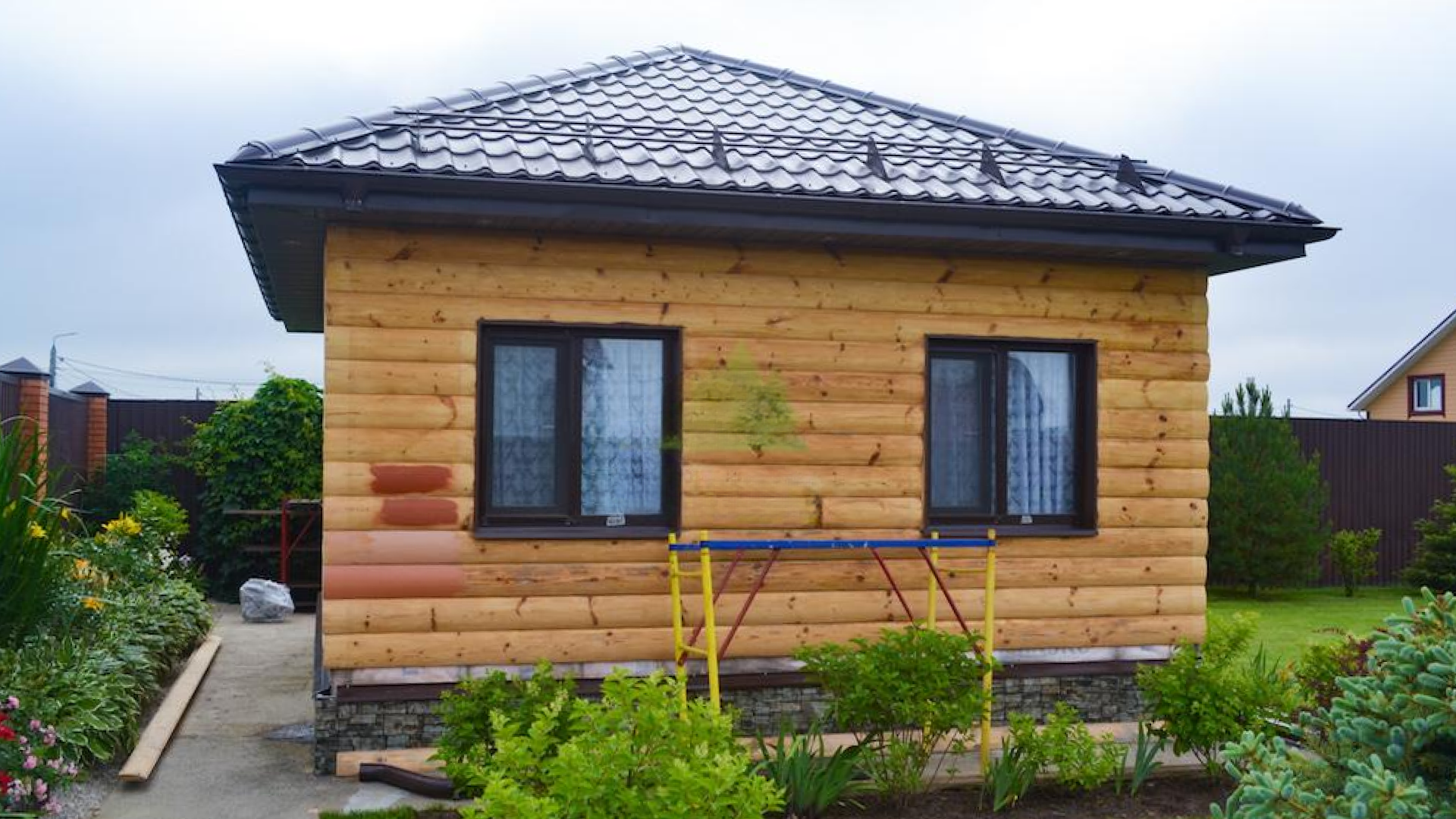 - Завершение: Проверен монтаж, устранены дефекты, выполнена финальная обработка защитными составами для долговечности блок-хауса.