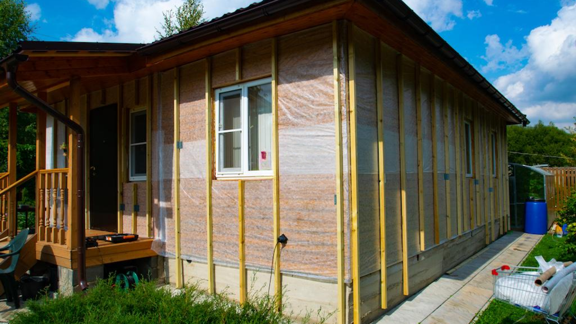- Подготовка участка: Очищены и выровнены поверхности фасада, подготовлено основание для монтажа блок-хауса, включая демонтаж старого покрытия.